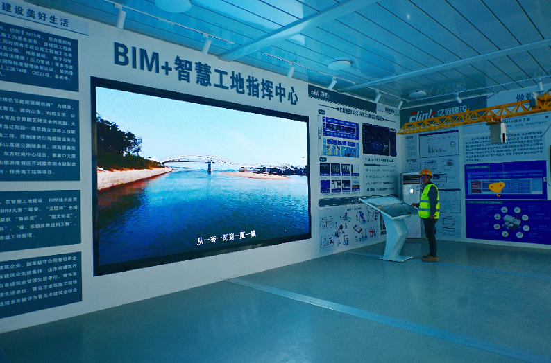 走进西海岸新区灵山湾路南侧的文化大厦施工现场,首先映入眼帘的是“VR体验馆”和“智慧工地指挥中心”,现场工作人员介绍说,“这相当于工地的‘智慧大脑’。”