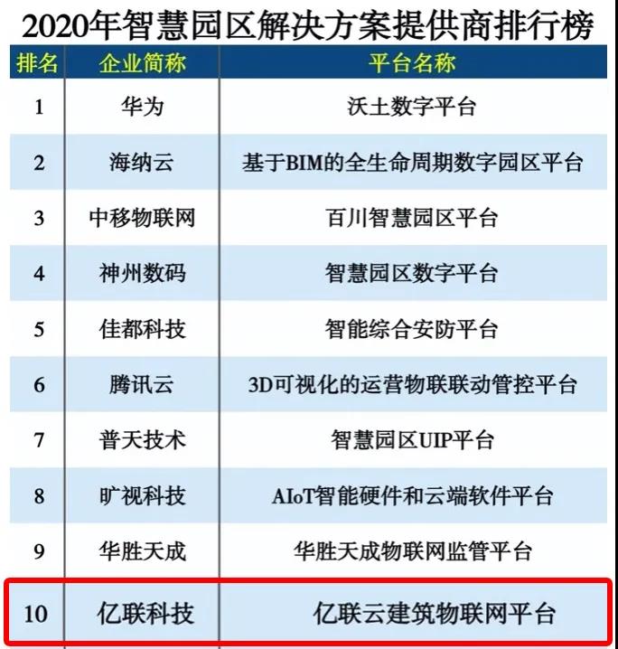 12月4日,被誉为“中国版福布斯”的中国互联网周刊重磅发布“2020年智慧园区解决方案提供商排行榜”,盘点近期在智慧园区的建设中有突出表现、成绩斐然的提供商。乐鱼平台科技凭借“乐鱼平台云建筑物联网平台”卓越的智慧赋能和广泛的场景落地,以破竹之势冲入第一梯队,成功跃居2020年智慧园区解决方案全国十强!