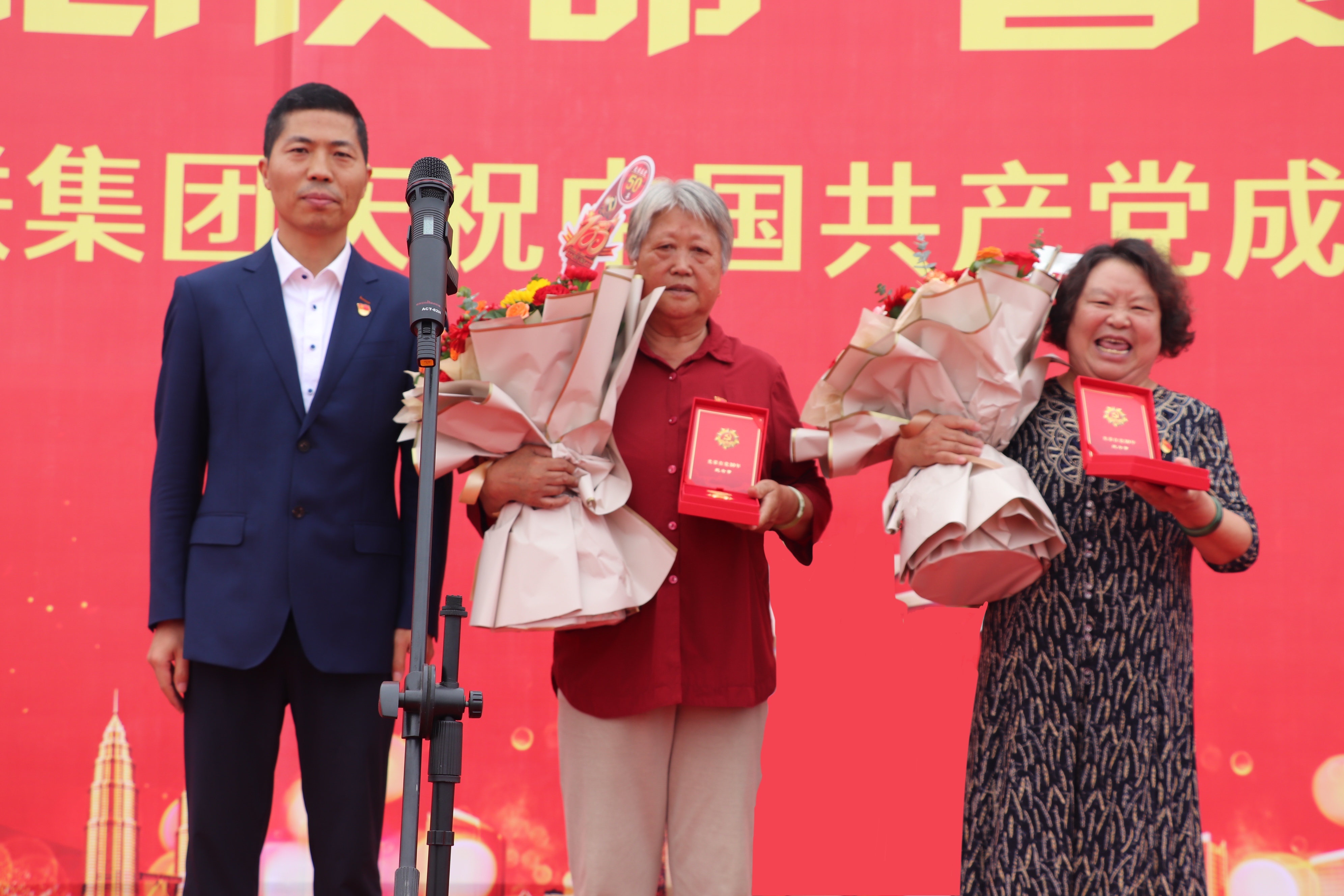 王本花、丁淑芹两位老党员获此殊荣,在活动现场,集团党委副书记、总经理李海涛为两位老党员颁发纪念章。