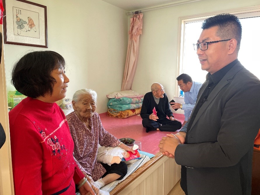 10月11日上午,一行人来到101岁老人王瑞元、99岁老人孙方成夫妻的家中,两位百岁老人相濡以沫,在孙家滩村度过了90载春秋,身体十分硬朗。老人的儿媳薛桂菊介绍说,两位老人是黄金搭档,一位眼明、一位耳聪,可是让人羡慕呢!当天,一行人还来到了孙方德、葛明英、孙兰新等老人的家中,详细了解老人生活情况,倾听老人们吐露乡愁,希望早日搬回孙家滩安置区的心声。孙兰新老人说,在村里居住多年,还是回“家”更舒服,村里的老朋友、老伙计都能约出来,一起坐坐。