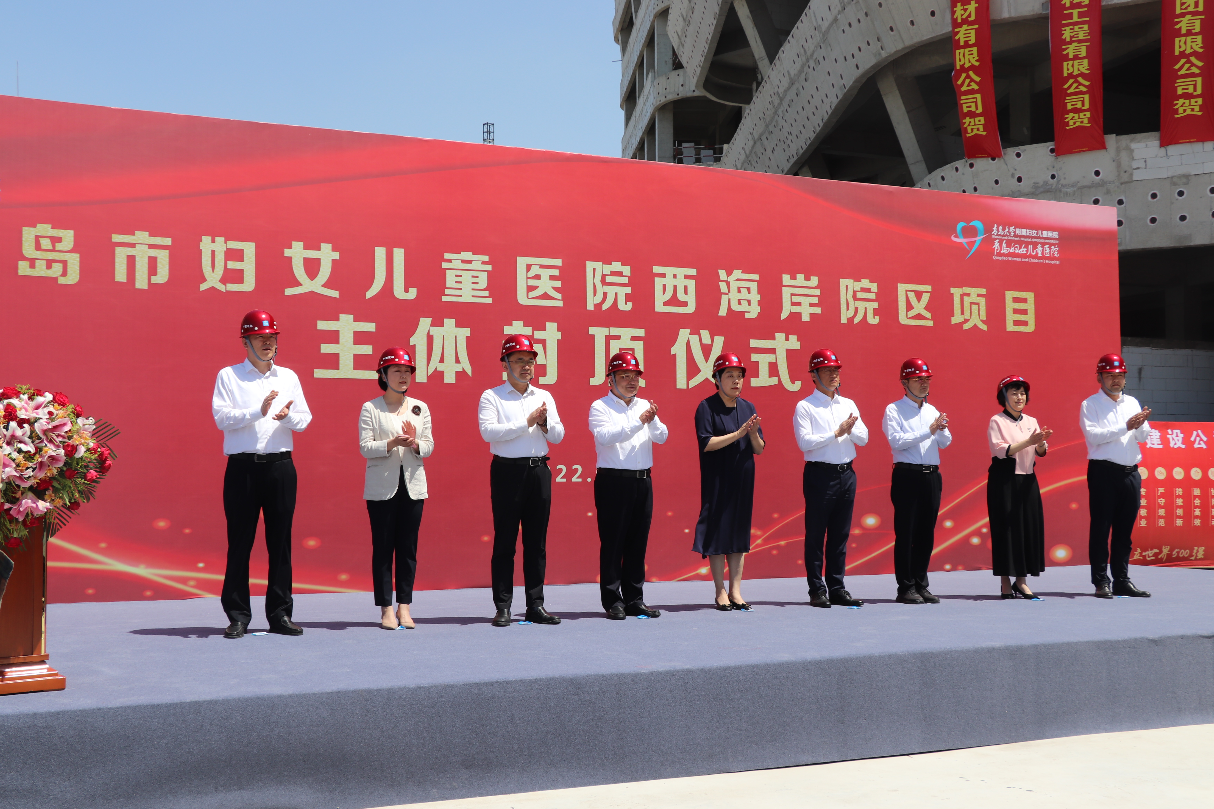 6月6日上午,青岛市妇女儿童医院西海岸院区举行封顶仪式,市卫健委党组副书记柳忠旭,西海岸新区人大常委会主任佟海燕,区政协主席逯鹰,区委副书记杜乐江,副区长张磊娜,区政协党组副书记、副主席、区卫健局党组书记、局长薛立群,区医疗健康发展集团有限公司董事长董克军,青岛市妇女儿童医院党委书记、院长邢泉生,党委副书记王琳,医院领导班子成员、干部职工代表,中建八局发展建设公司第二分公司总经理张永祯,西海岸新区有关部门、单位主要负责同志,区卫生健康局、医疗健康发展集团有限公司、项目建设、设计、咨询等参建单位有关干部职工代表共同见证了这一历史性时刻。