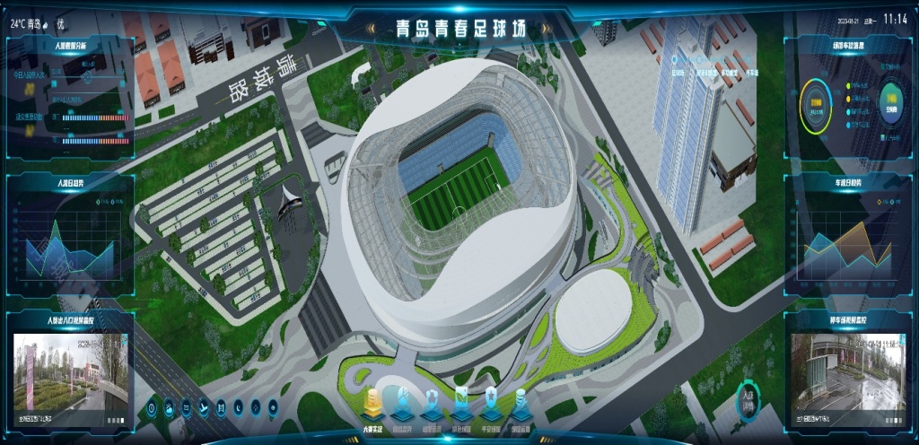最近,中超联赛半程观众人数排名榜出炉,青岛海牛队的主场青春足球场以场均20078人、排名第六,所以平安场馆建设尤为重要。在场馆智慧运营中心大屏上,记者可清楚的看到整个场馆人员出入口视频、人流和车流量的实时及趋势数据动态、入园人次和售票总数等数据分析,以及停车场的饱和程度等,通过该平台还可以直观地看到场馆周边的资源配置情况,据介绍,当发生紧急事件,工作人员可快速地去调配相应资源,迅速解决现场的一些突发事件。